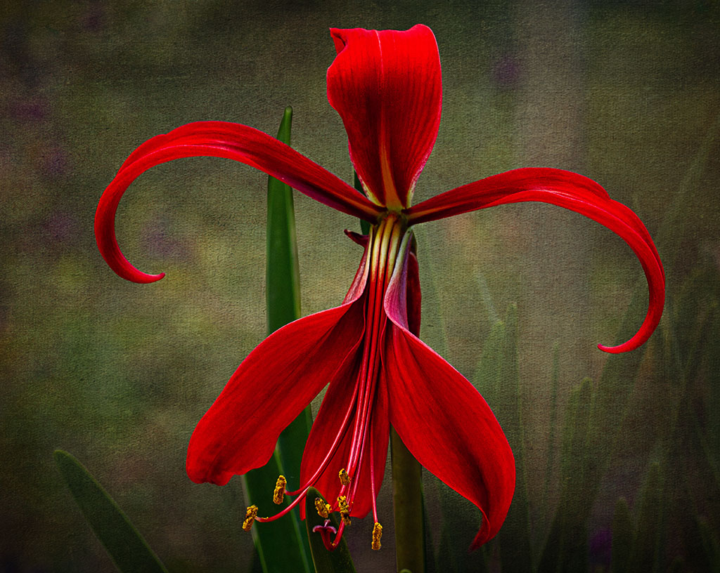 Thanks for your comments Rich, it is one of my favourite flowers and bought the bulb at an Horticultural Show some years ago. They had it on display and it looked stunning. Here is the revised version with spots removed and texture on the leaf in the foreground. |