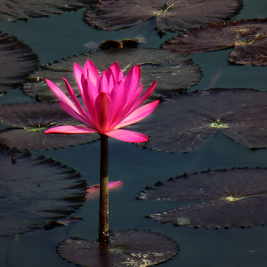 Another lovely image of a lotus and I particularly like how it's surrounded by it's floating leaves. I do agree with Marti about the white spots which are distracting. I have also cropped the image to draw attention to the flower and have left some of the floating leaves in. I darkened the background to make the flower stand out more. |
