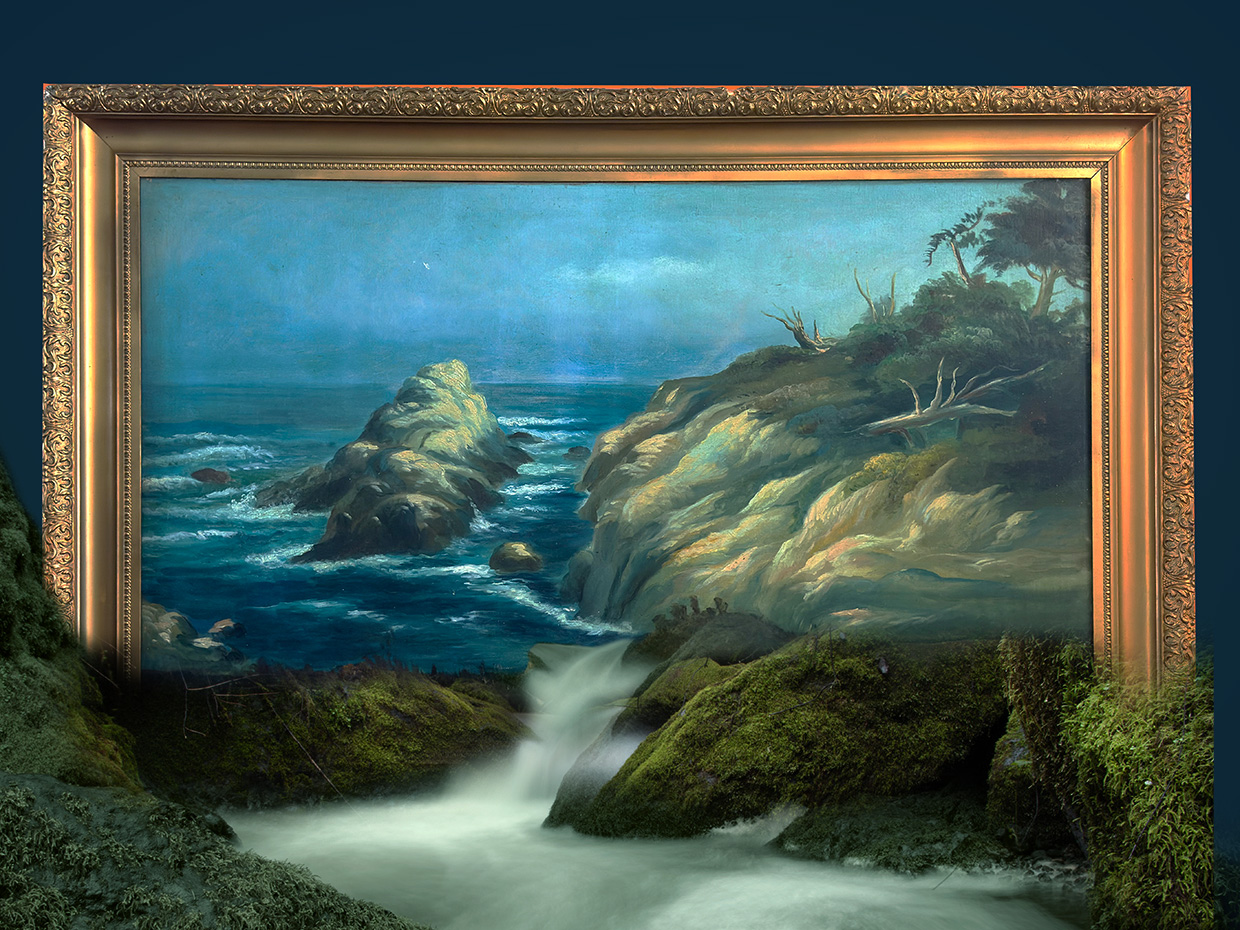 Hi Brad, what a wonderful composite. I really like this composition and have been thinking along these lines for a while and have been too timid to attempt it. My only suggestion would be to cover the bottom part of the frame and have that covered with the rocks to give the impression that the frame is embedded into the rocks. Something like this. |