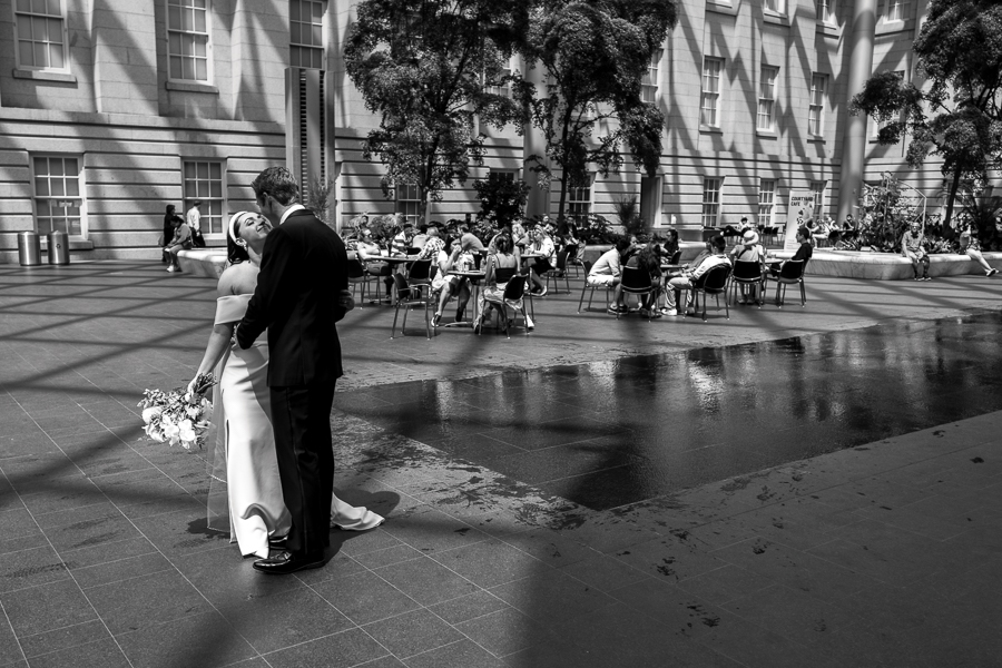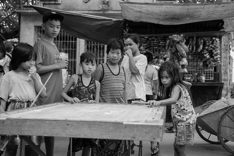 Very nice street scene. Photographing crowds like this is really difficult and you did it well. I like your crop. I also find the color distracting and think that the B&W helps the viewer focus on the faces and the movement of the people. |