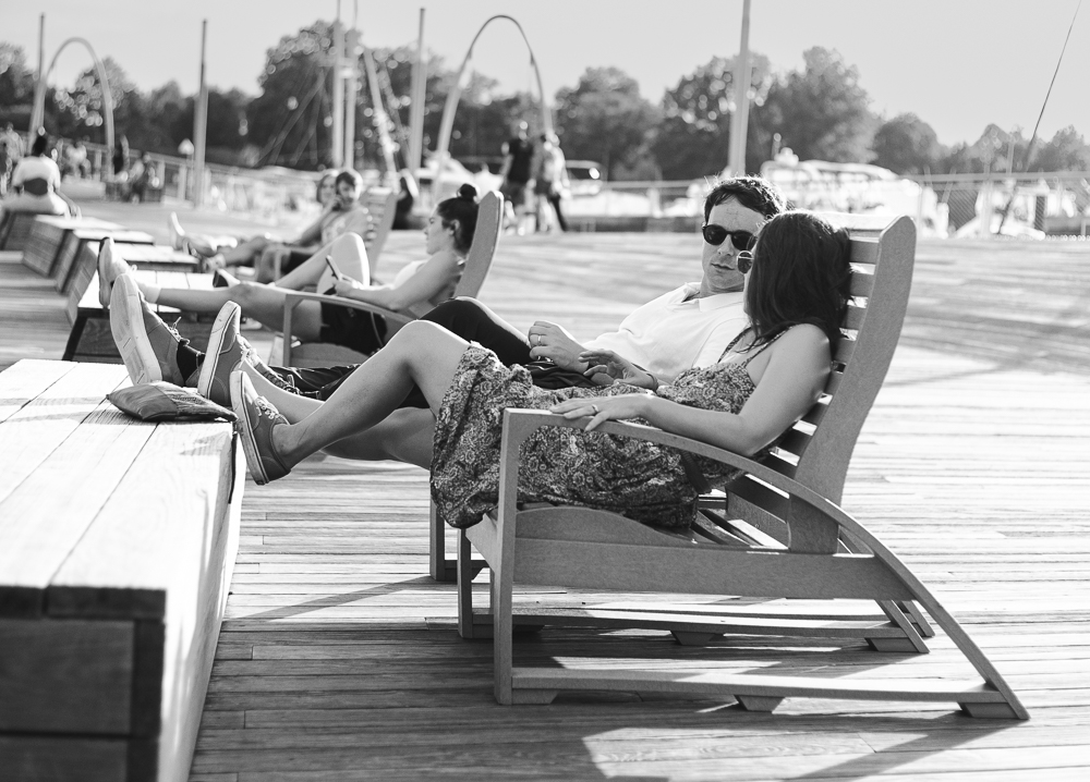 Very interesting photo with lots of stories. I thought they were all fishing and like others didn't see the dog until I looked closely. I like the sky and think you hit the composition spot on. The bridge also adds an interesting element. |