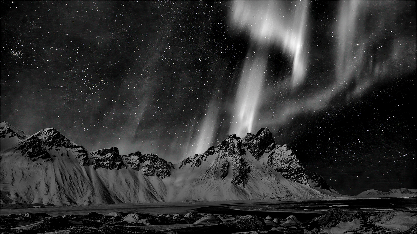 Peter, I share your like for Vestrahorn and have enjoyed your many versions. However, this might be your best yet and the composite is excellently done. I particularly admire the overall composition and the placement of the aurora. May I suggest for your consideration that an adjustment to the B&W levels/curves could add some sparkle to the left side of the image which seems a little flat to me. |