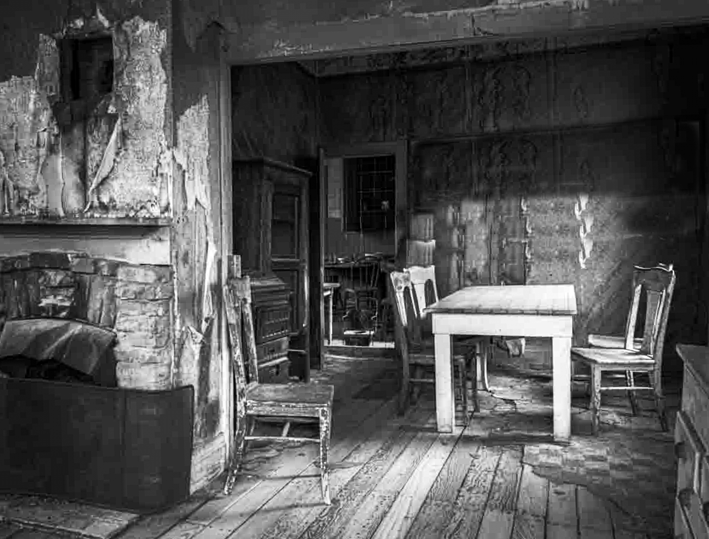 Great image and well processed. I would like to recommend cloning out that "museum board" on the wall to simplify the story of an abandoned dwelling. In addition, I would suggest you adjust your curves to bring out the extreme end of your black and white tones some more and provide a slight straightening. I attach my rough effort to illustrate the point. |