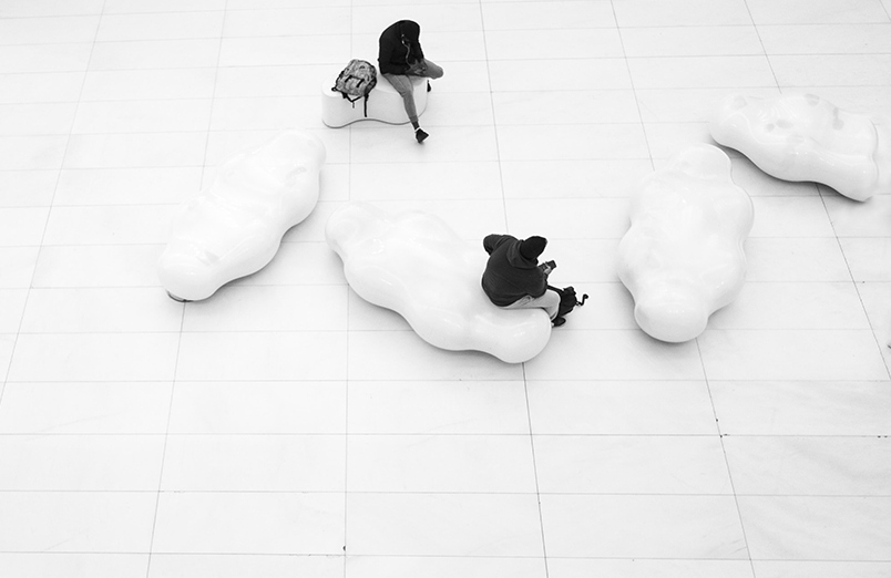 I find the image to have an interest of subjects. The two people reading and those seats, those seats... Kind of unique.
