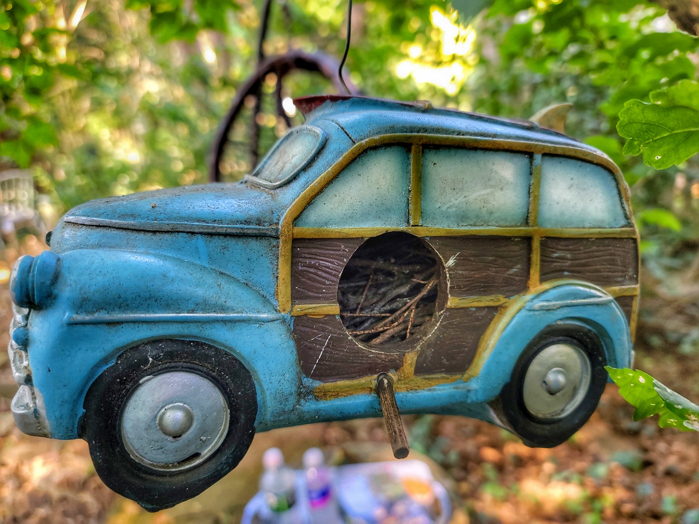 It's a bird house and as you can see was used this spring/Summer. |