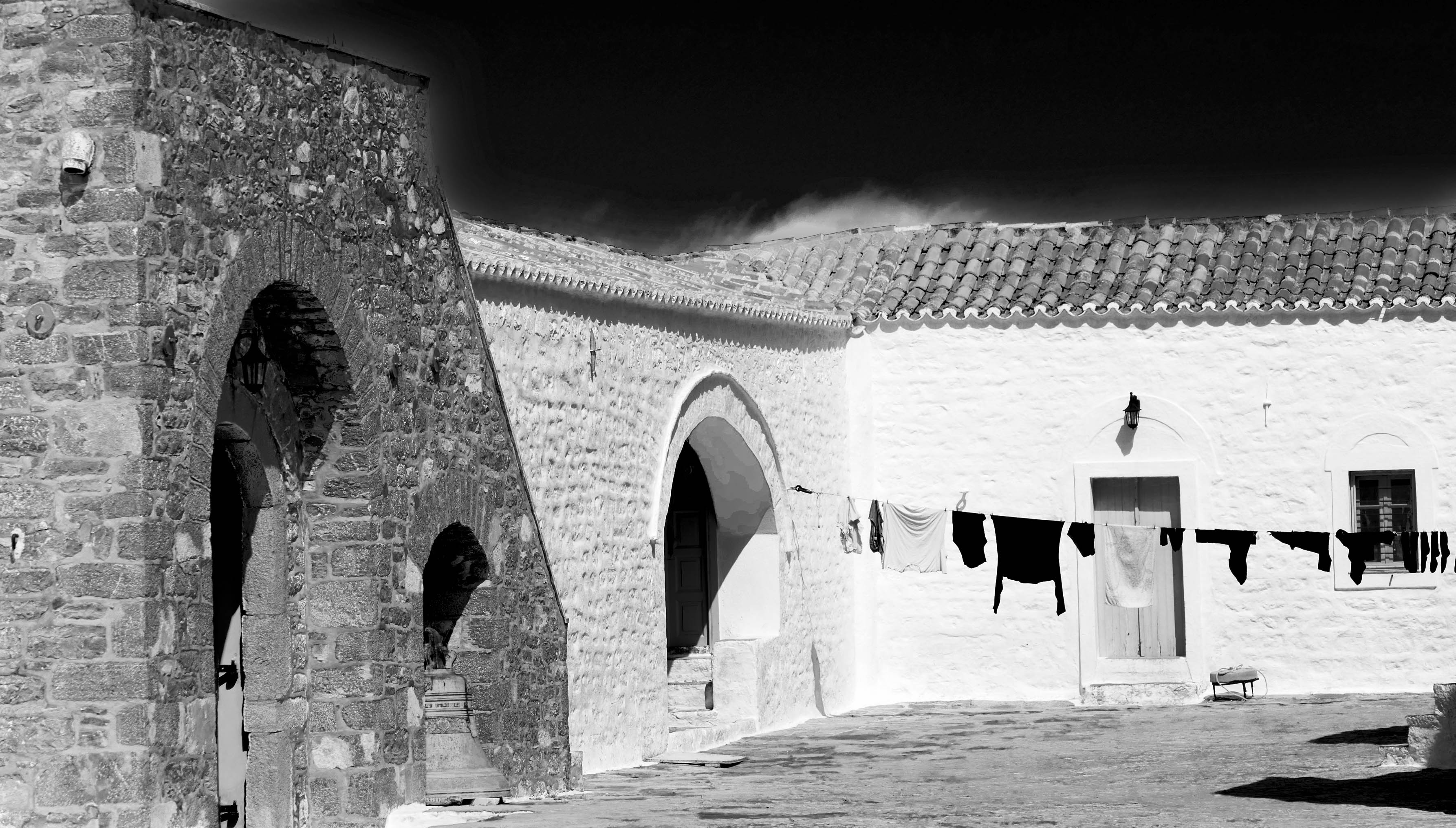 This photo was taken at Monastery of Prophet Elias, Hydra, Greece in the month of July and it was indeed hot.