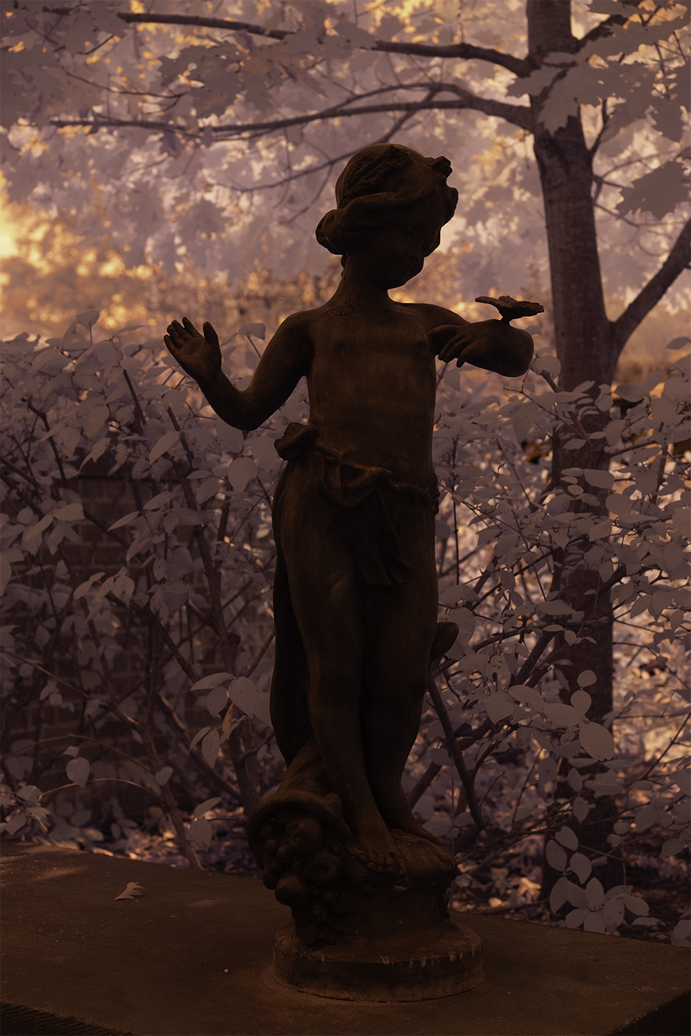 I should add to those comments about The Girl with a Butterfly. Using Infrared or in this case Dual Band filtration only establishes a base image. In this image the Infrared component is only about 30% or less of the RAW file. "Infrared" is not a creative process per se. How one processes the image starting from the "white balanced" RAW file is where the magic happens. And that magic happens in Photoshop not in RAW conversion. The choice of having an Infrared component simply opens up new pathways to creative interpretation. |