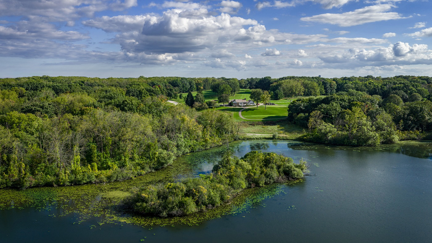 I like this image a lot, looks like a wonderful place to have a nature center. I like the way the island is in a very rough way, a cut out of the woods area where the lawn and building are and dropped in the water. I think the photo could benefit from slightly more colorful water. |