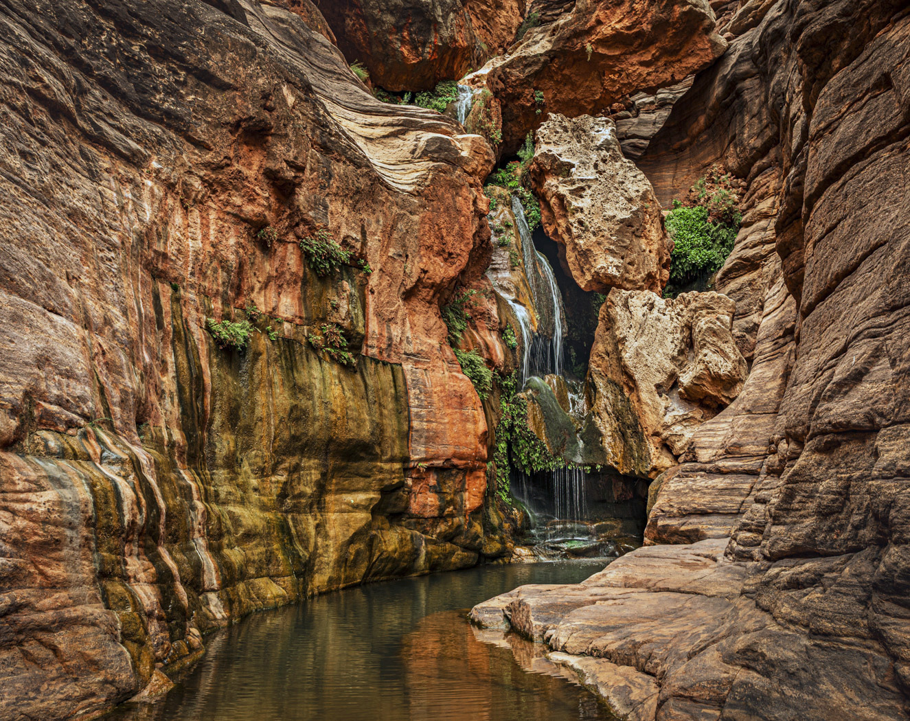 Hi Jill, sounds like quite an adventure, eight days on the Colorado. This a very nice image, the leading lines of the stream draw the viewer right into the image's focal point- the waterfalls. The striations on the rock surfaces also do the same thing. One thing that I'm not sure of is the color balance- to me the image seems to have a slight orange tint. I took your image and reduced the color temp some and here is the result. |