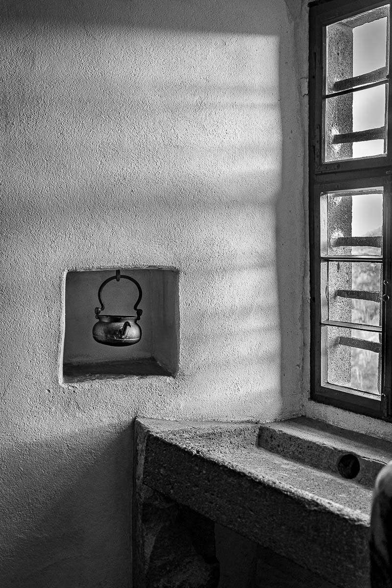 I love these kinds of images, especially in mono. I think it is great the way it is. I made a couple of adjustments, (because I enjoyed working on this image) removing some of the highlights out of the windows and wall, worked on the inset of the wall for the pot, and some on the pot as well. Also softened the contrast. I would love to see this in print. |