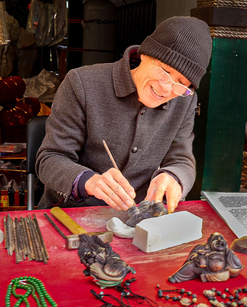 Sally,like Isaac I think much of the strength of this photo comes from the look on the face. A person happy at work almost a rarity in our culture. I like the modifications Isaac did as well. I also darkened the background and lightened the face. To me, it seems to focus on the artist. Just thoughts on an already fine image