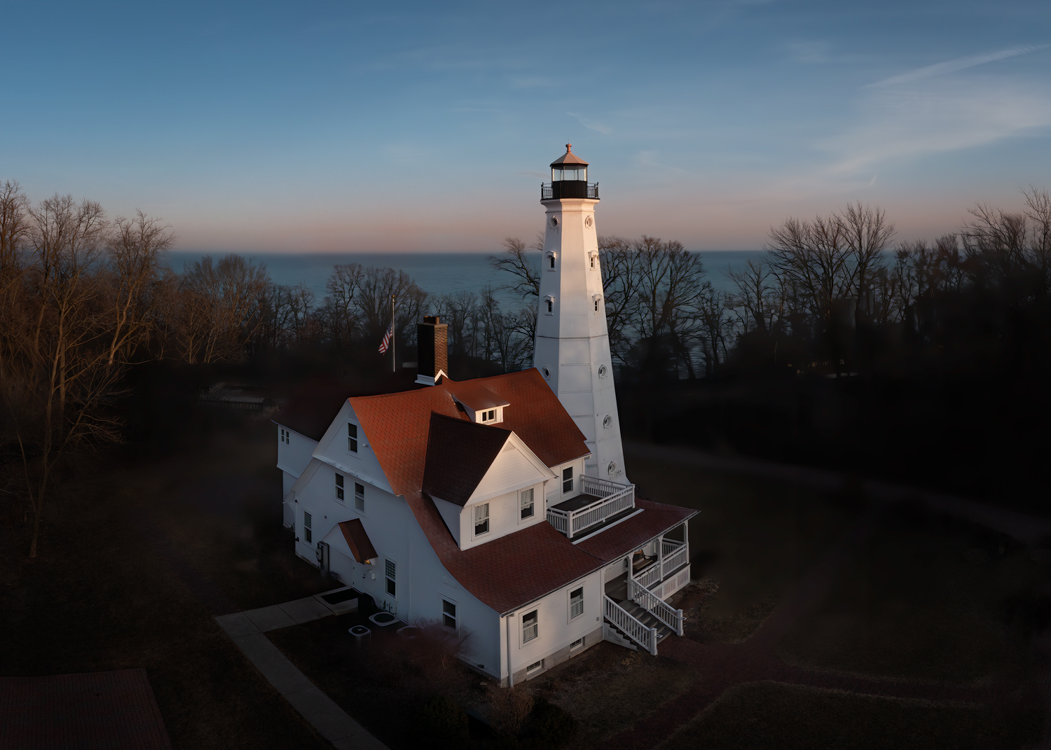Thanks, Lou! I was kind of wondering about that myself. It was almost dark and although there was still light in the sky and lighting up the lake, the trees this time of year are still darkish brown and that added to the bottom of the picture looking darker. I have another shot taken a few minutes later where the lights were starting to come on at the bottom of the lighthouse, but I chose this one because I rather liked the late-day light that was still shining on the top of the lighthouse and the tops of the trees, but I agree it looks a little incongruous. I think I might go back there and try again when the leaves and trees are green and when there is more sunset color. |