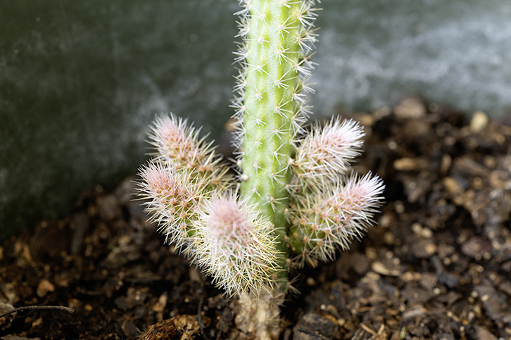The green stem is 2-3' long and hangs over the side of the hanging basket and was the only one that had the new pink shoots. I cropped the green stem way down to keep it from being the main focal point. The pink color and all the tiny spines were so delicate looking. |