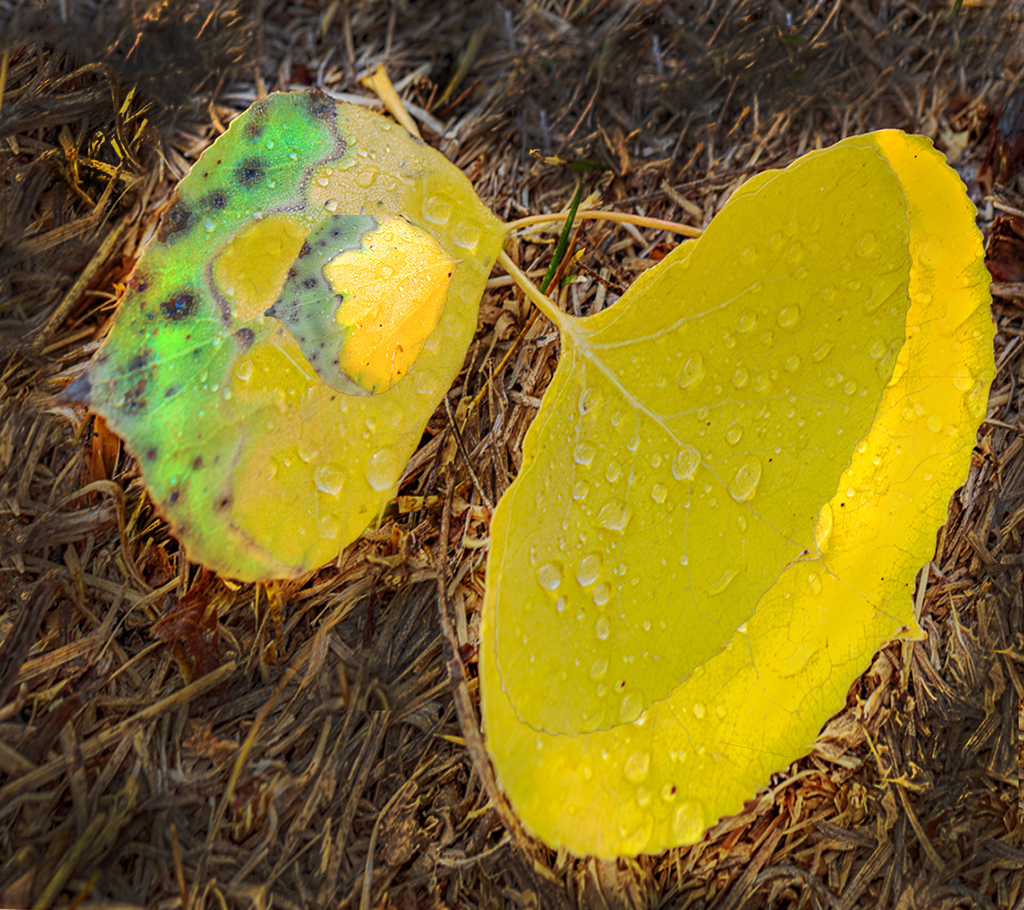 I decided to make an image that no one else would make, and have the participant look at it and ask what in the heck is that. I used the transformation tool to move both of the leafs and to make the smaller copies to fit on top of the large ones. Don't ask me how I did this, but I played around with different tools. I used the blur tool and burn tool to the background, this made the image stand out. On the leaves, I used the burn and dodge tools, selective color and brightness/contrast.