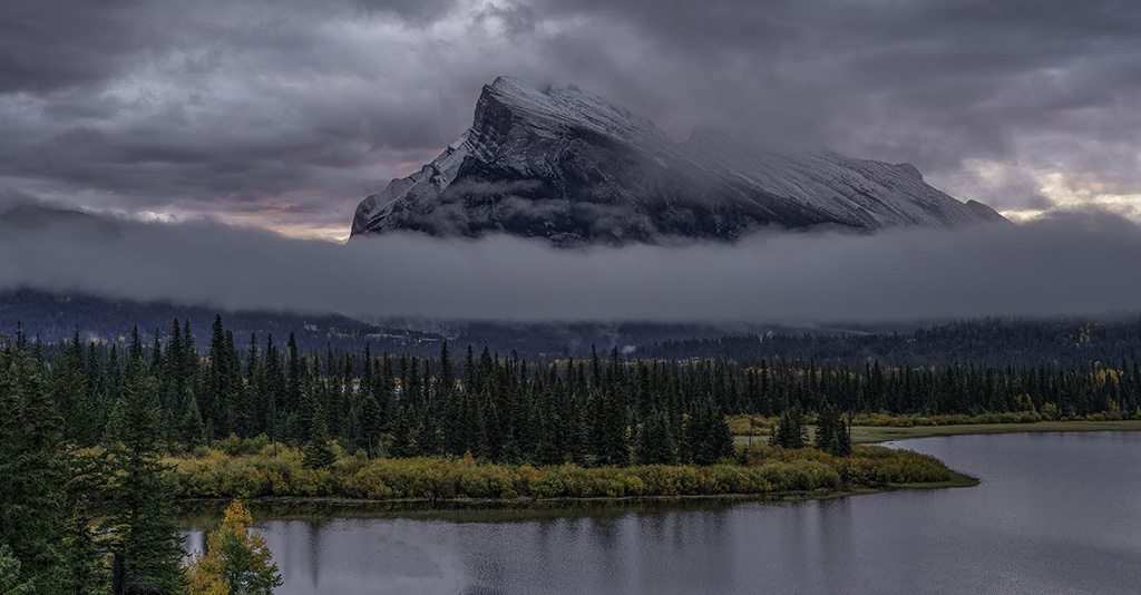Hi Peter: Banff National Park is on my bucket list, and you have captured this spectacular park so well in your image. It is sharp from top to bottom. The little bit of color around the mountain is perfect. My suggestions are to turn this into a panorama by cropping out a lot of the sky. This helps to take some of the gloom out of the image. Then clone out the two areas of trees over the water on the bottom. They are distracting and don't add anything to your beautiful image. |