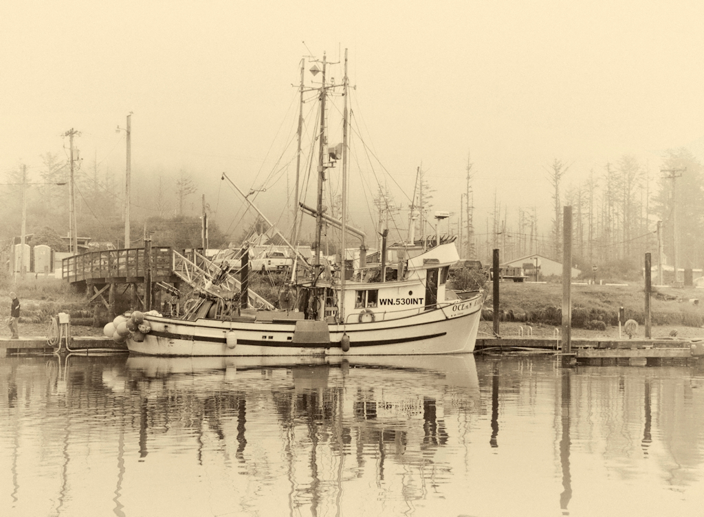 I just finished a trip to Washington state and I spent a great deal of time in fishing ports and marinas. I love fishing boats because of their character and no two of them are alike. I think there's something mystical about these mariners. However, your image is just a bit too busy for me. The foreground just contains too much clutter, which detracts from the subject of the fishing boat.I think I would've moved off to the left of the right significantly. In addition, I would recommend some light enhancement to brighten up the image overall.But that's just me |