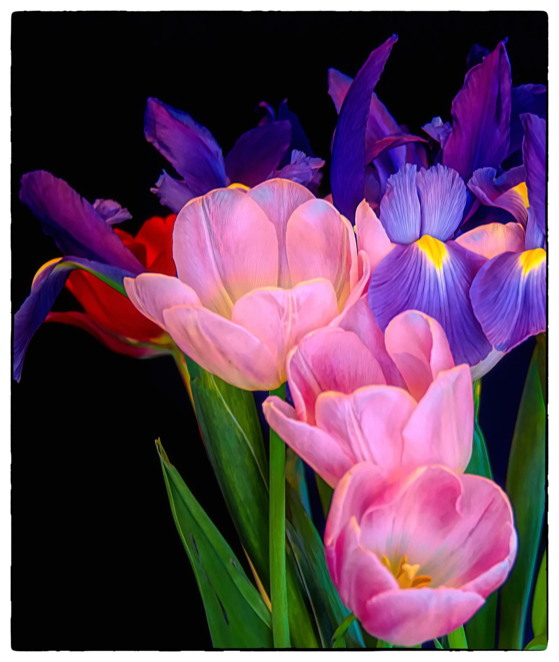 This reminds me of an oriental silkscreen and I love it. The noise in the background, however, the tracks a bit from the sharpness of the overall impression I get from the image.While I think you are correct in doing it in black and white, it would be interesting to see what it looked like in full color. |