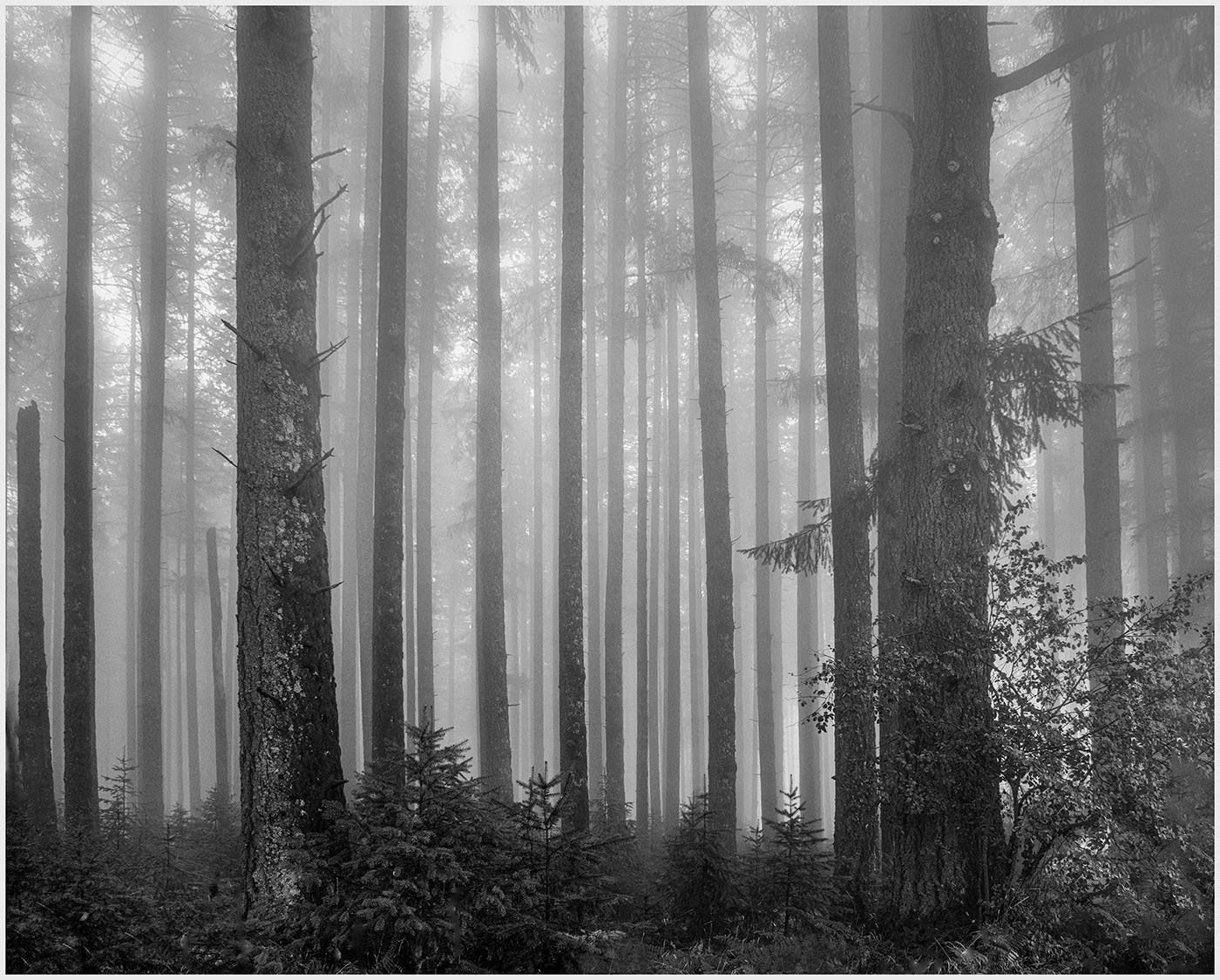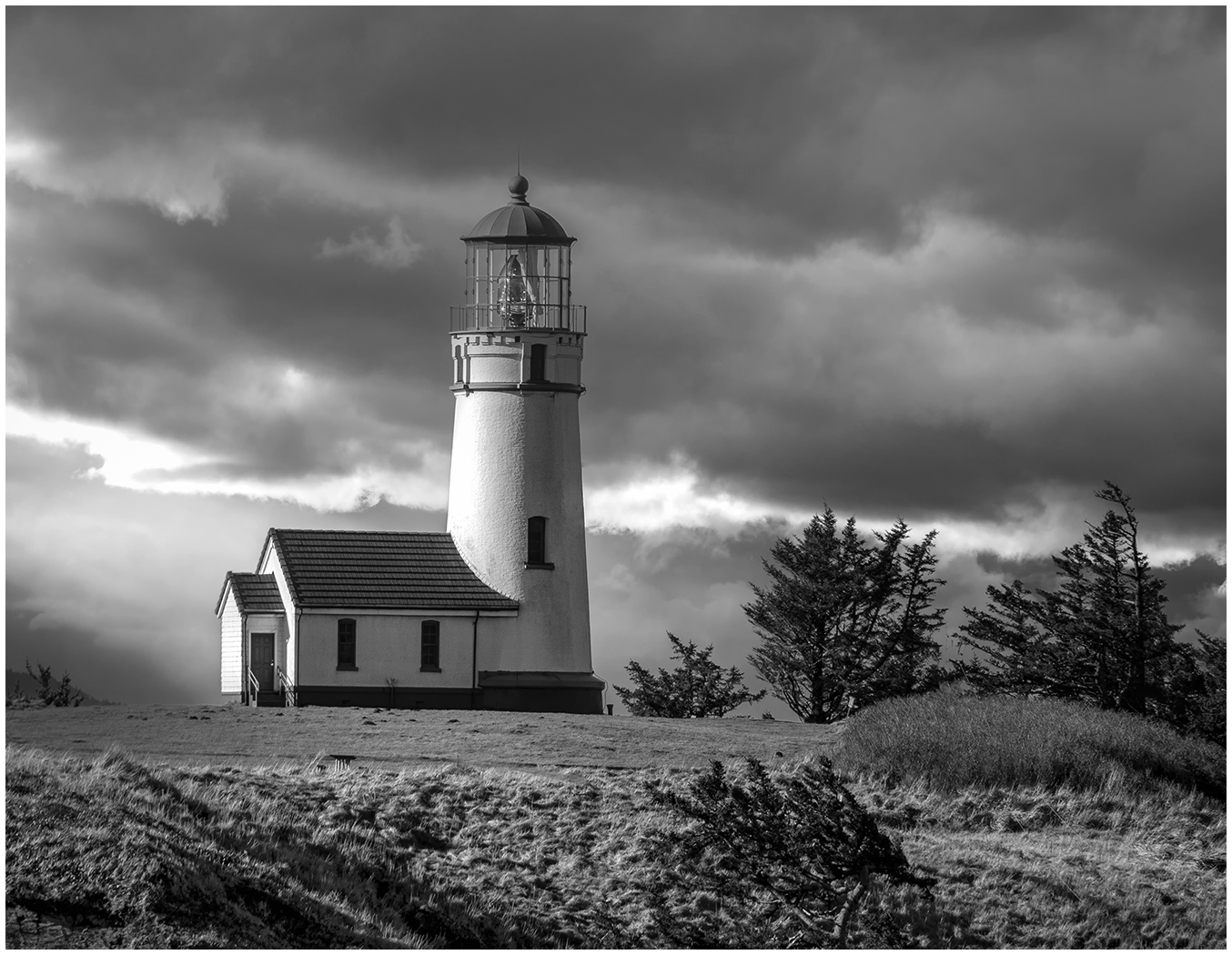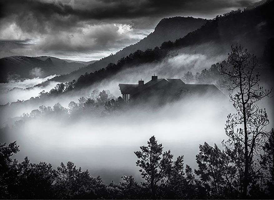 I like the conversion to Black and White. The green is toned down and now focus is on the shape of the trees. The sky looks more dramatic and contributes to the mood. |