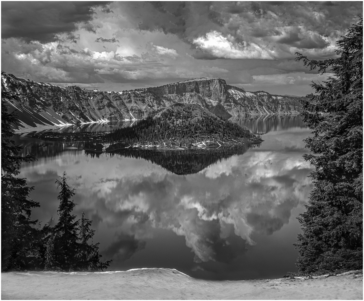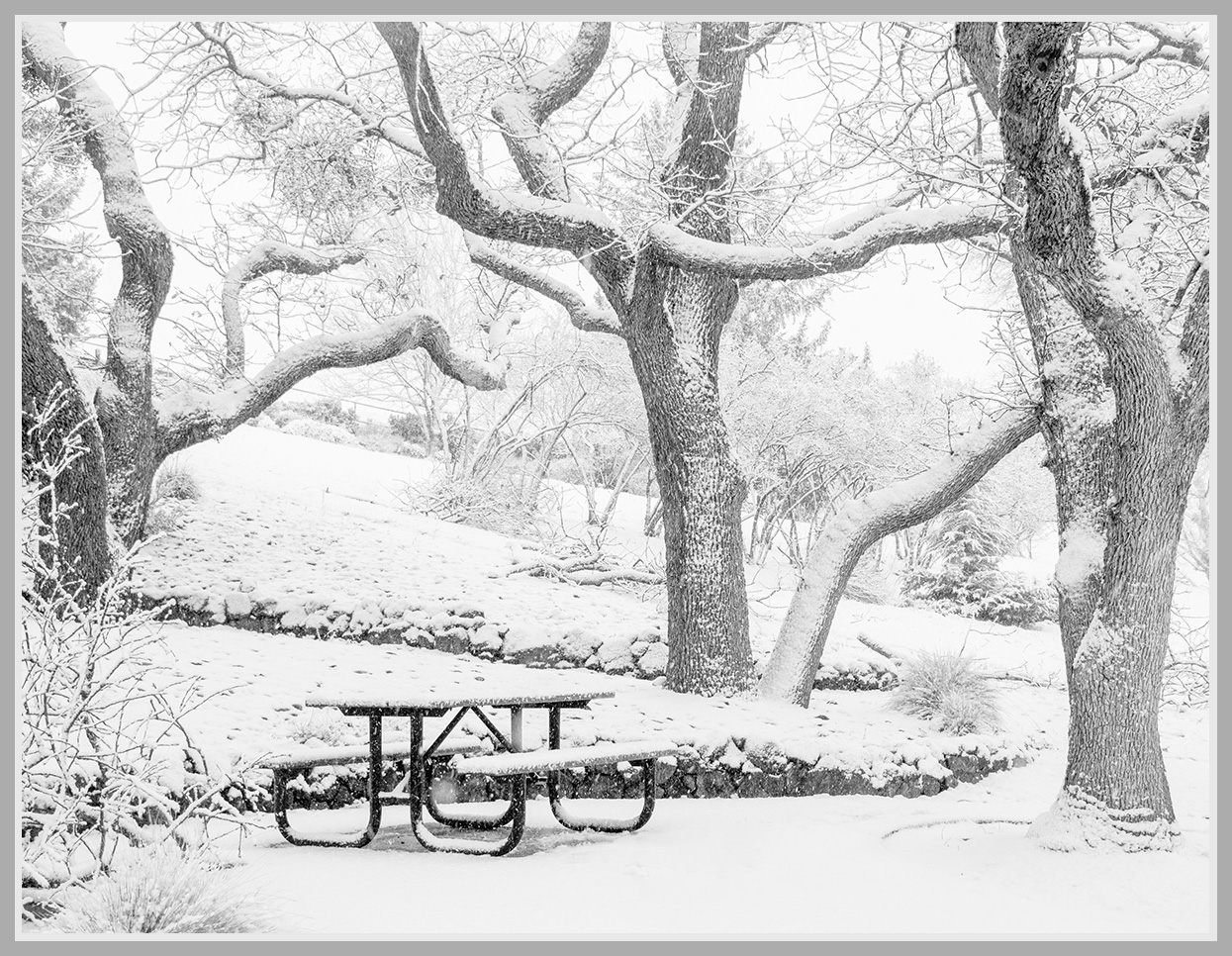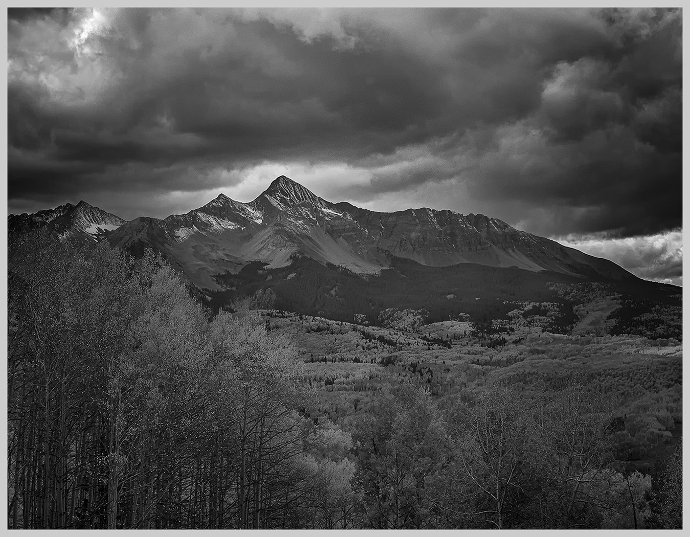 I like the conversion to Black and White. The green is toned down and now focus is on the shape of the trees. The sky looks more dramatic and contributes to the mood. |