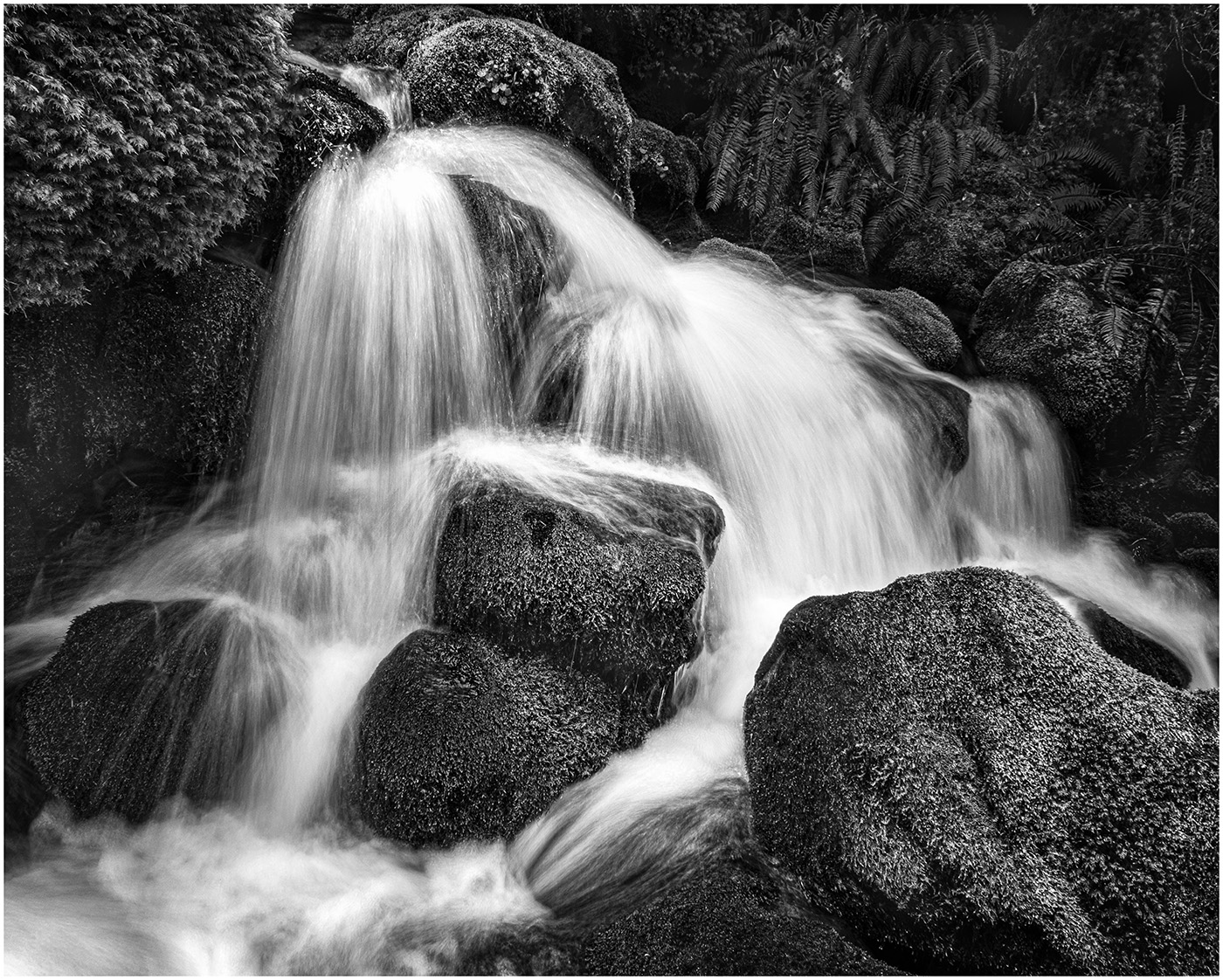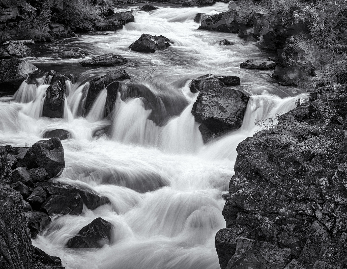 I like how you have cropped the original so now my focus is on the largest falls. In the original, the big rocks were competing with the water. In the Black and White, they tone down and our focus is on the subject. Nicely done!