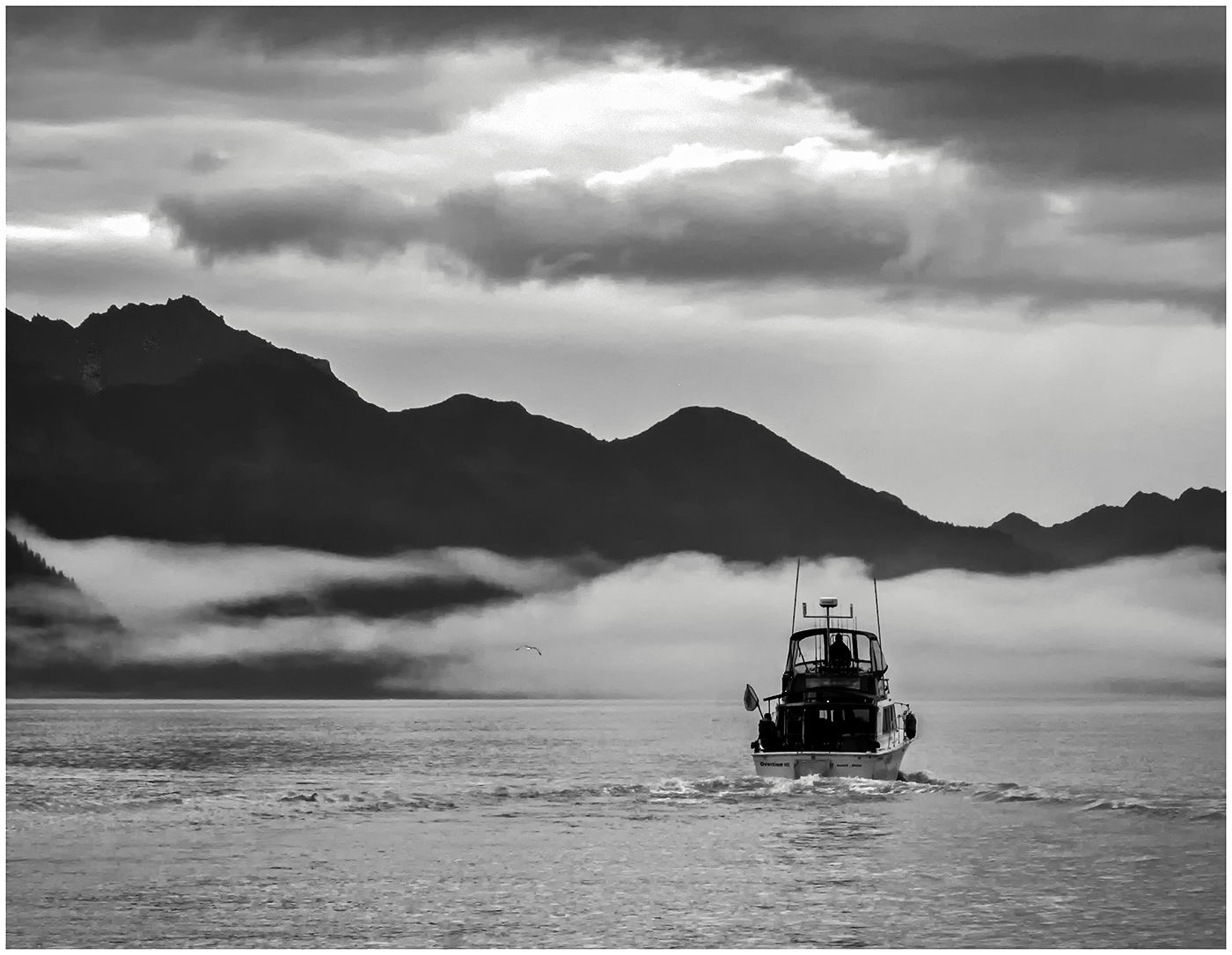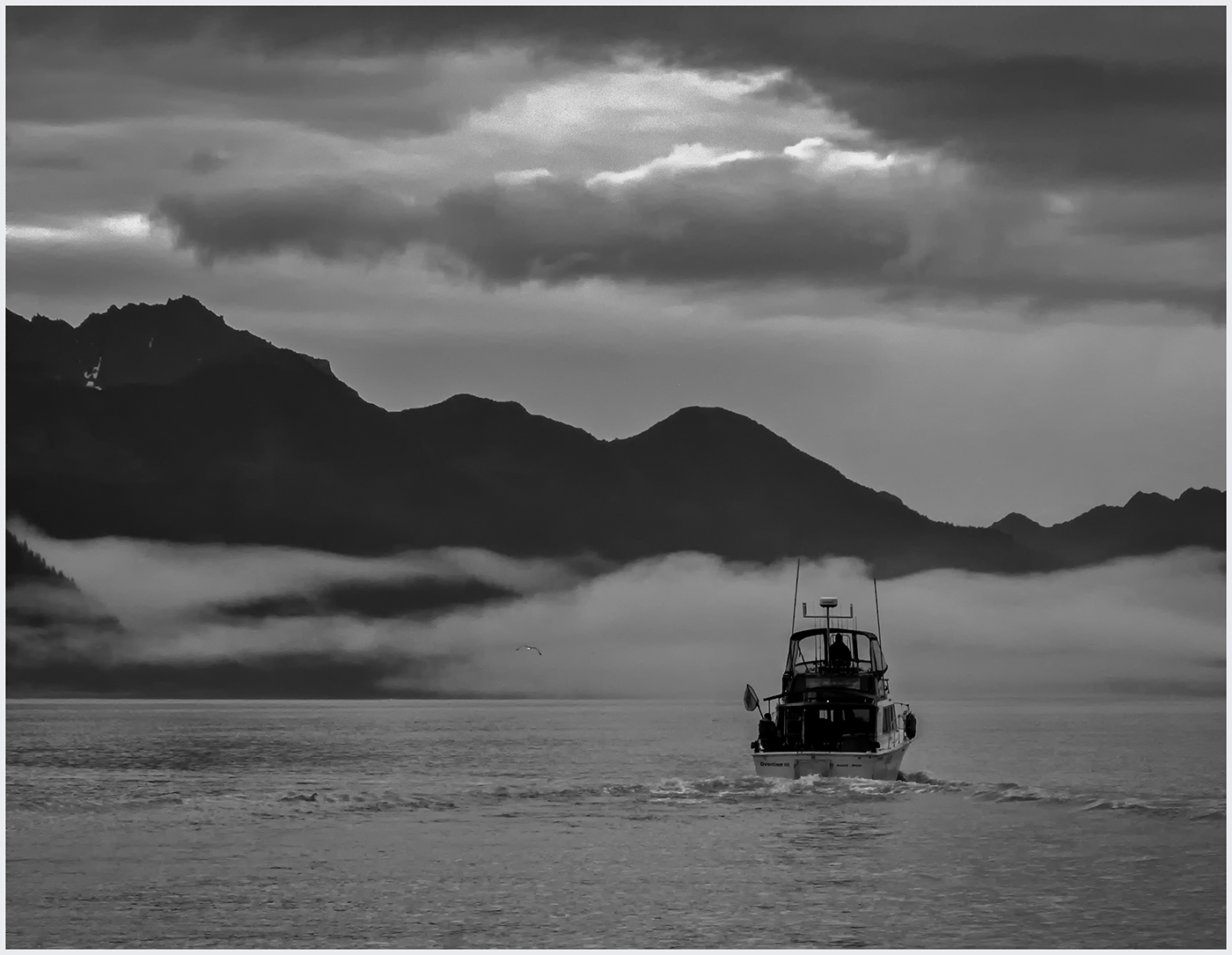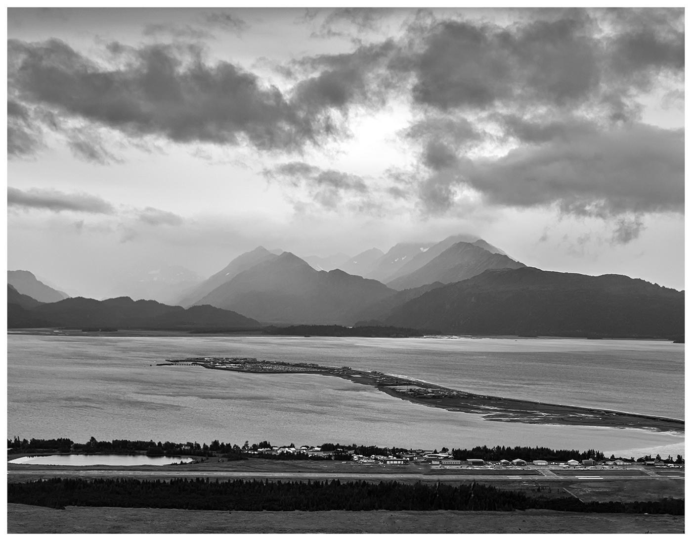 I am confused about the "flat" mountains. This was 15 minutes after sunrise on a rainy foggy morn. The mountains were mostly dark shapes. As the sun came up, it was the clouds that became interesting, the mountains remained dark. Question: How much do you keep the photo as a capture of the light and mood as it was and how much do you change it to make it more appealing? A good discussion question. |