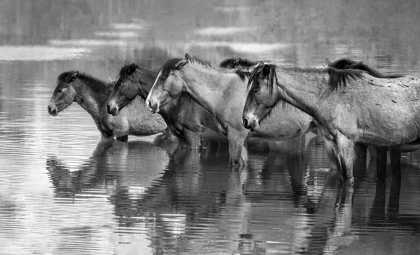 A beautiful photo of a beautiful young woman and her horse. The photo is nicely cropped as square and has beautiful tones. The only comment I have is more about the set up and not the photo. Did you consider having her stand on the other side of the horse so there would be light between her stomach and the dark horse? Because of the dark skirt it is difficult to differentiate between her and the dark horse.In the color version there is more contrast. |
