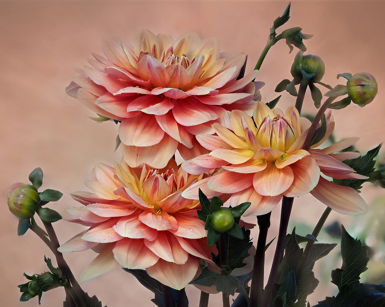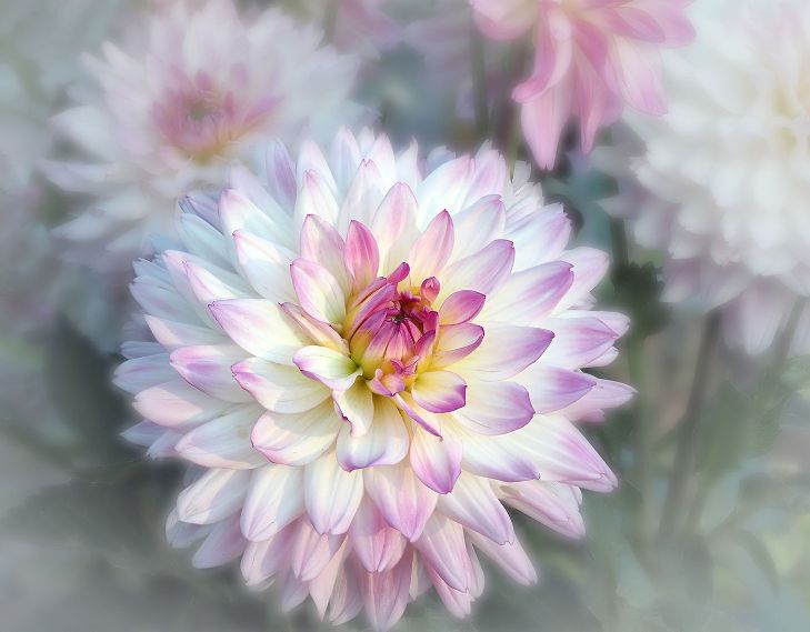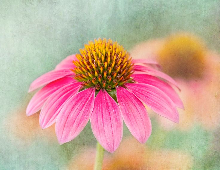 I like how the texture blends with the flowers. It is soft and soothing. I also like your technique of using a frame to bring your eye to the center and the flowers. I am not sure what adding blue to the texture would do to the mood. The only minor suggestion I might have is taking out the dead petal to the right and below the center flower. It is a bit distracting to me. |