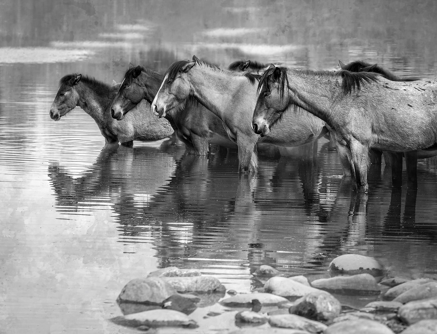 Thank you, Ken. I did process the B&W with the river rocks initially, but I felt it took away from the diagonal of the horses in Black and White. |