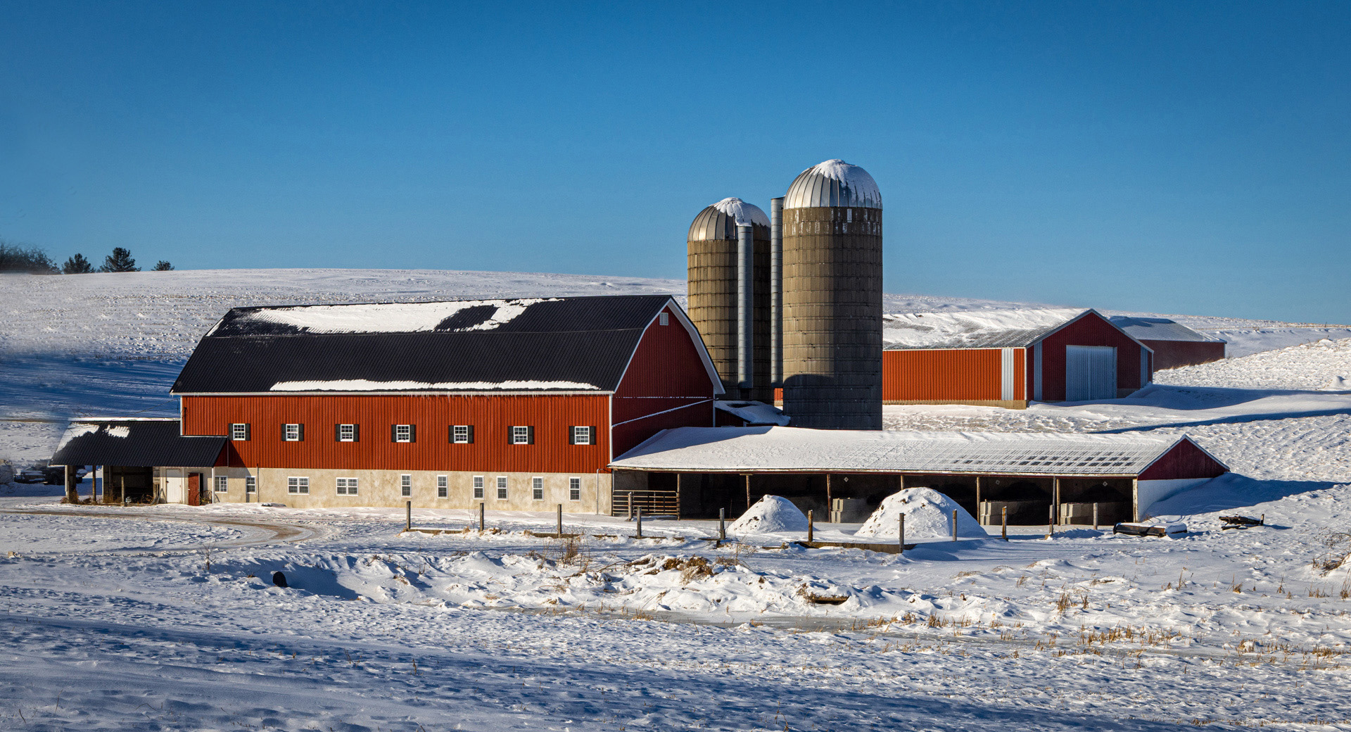 I like the lines of the silos and barn, the color red against a blue sky. But not zero degrees? No thank you! I lived in Wisconsin 2 winters when I was much younger. One morning the radio said it would be 5 degrees that day and I thought "Yes, it will be above zero." Time to leave when I can acclimate to that!