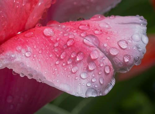 Really nice shot. I think that the water droplets really make the image. I would probably have zoomed in or out to frame this shot. You could either zoom out and add some green background at the top of the flower, or zoom way in and really highlight some of the droplets. I took a quick shot at the later idea. I zoomed in one the lower right, and using Topaz Gigapixel to add some resolution. I certainly made it different, that's for sure. Not sure I love the colors of my copy though.