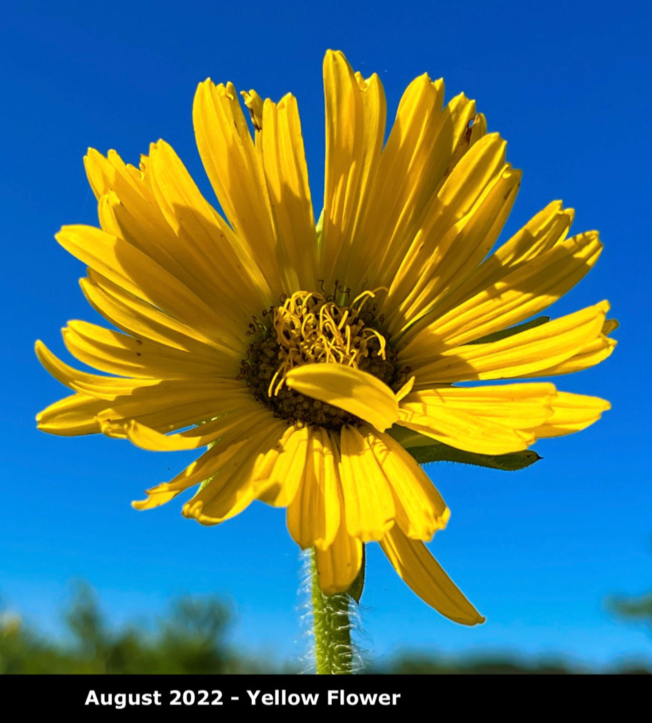 Jacob. I love the yellow against the blue sky for sure. Also the way the light falls on the centre of the flower is well done on drawing the eye there. I think if you are trying tp portray the height maybe a closer crop would help. I can see why you cropped the stem down to remove the background structure though. Perhaps if you had tried moving around the flower and used portrait orientation it would have allowed more inclusion of the stem. A lovely in-focus image that makes one feel positive. |