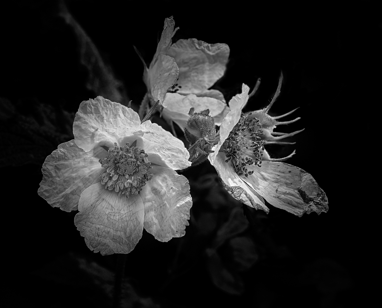 Welcome Rich. What a wonderful image. There is nothing to add. This is beautifully symmetric and the overlapping of the top bud to tie the two sides together is very well done. It's has a graphic feel to it . the colour manipulation on the right with the black background is so well done too. The fact that some of the petals on the dark side appear to have lost edges add to the interest. With that said would that same effect on the light side work where some of the petals fade out a bit more. Perhaps it would destroy the symmetry and completeness of the image. Well done! |