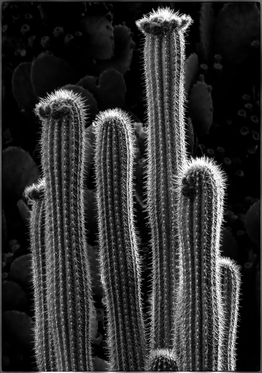 David - Love the light on this one. Love the colour version too, though you have done an outstanding job of the conversion. Having that side/backlight really helps the conversion. Everything about the cactus is sharp and you have set your black and white points nicely.