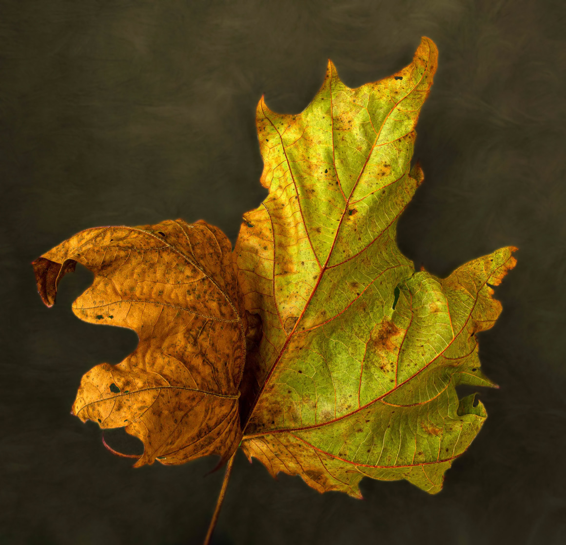 Doug very nice composition and I like the square framing. Wow 47 images no wonder this is so beautifully sharp. This is well exposed and colours pop. I might suggest a slight blurring of the background to create a more creamy texture. Since the detail is in the leaf you don't need the distractions of the texture in the background. It would focus the attention of the leaf. I took the liberty of an edit - hope thats alright |
