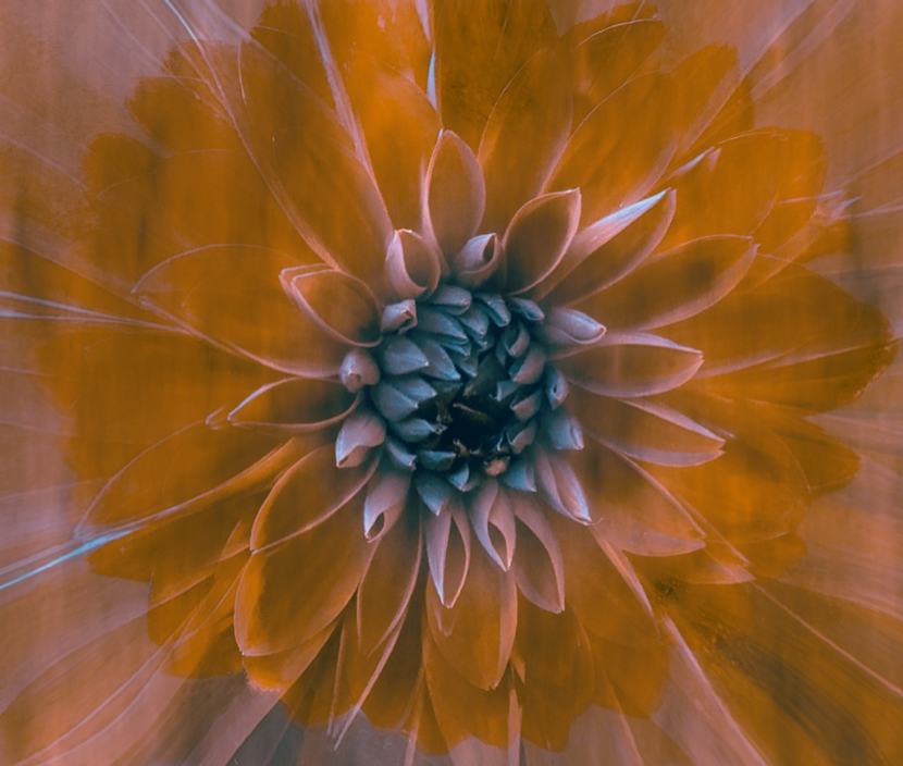 Doug I could and have. However the whole point is taking it to a more abstracted place via colour and effects. So here you go - a closer to nature version and cropped in a bit to remove some of the background - if you look at the original the center is closer to blue/purple which has become emphasized here as well, so on the 1st 2 versions I desaturated that center somewhat - because it pleased me. I am loving this conversation as I have obviously triggered some different responses to the image. For that reason I am calling it a success😎 |
