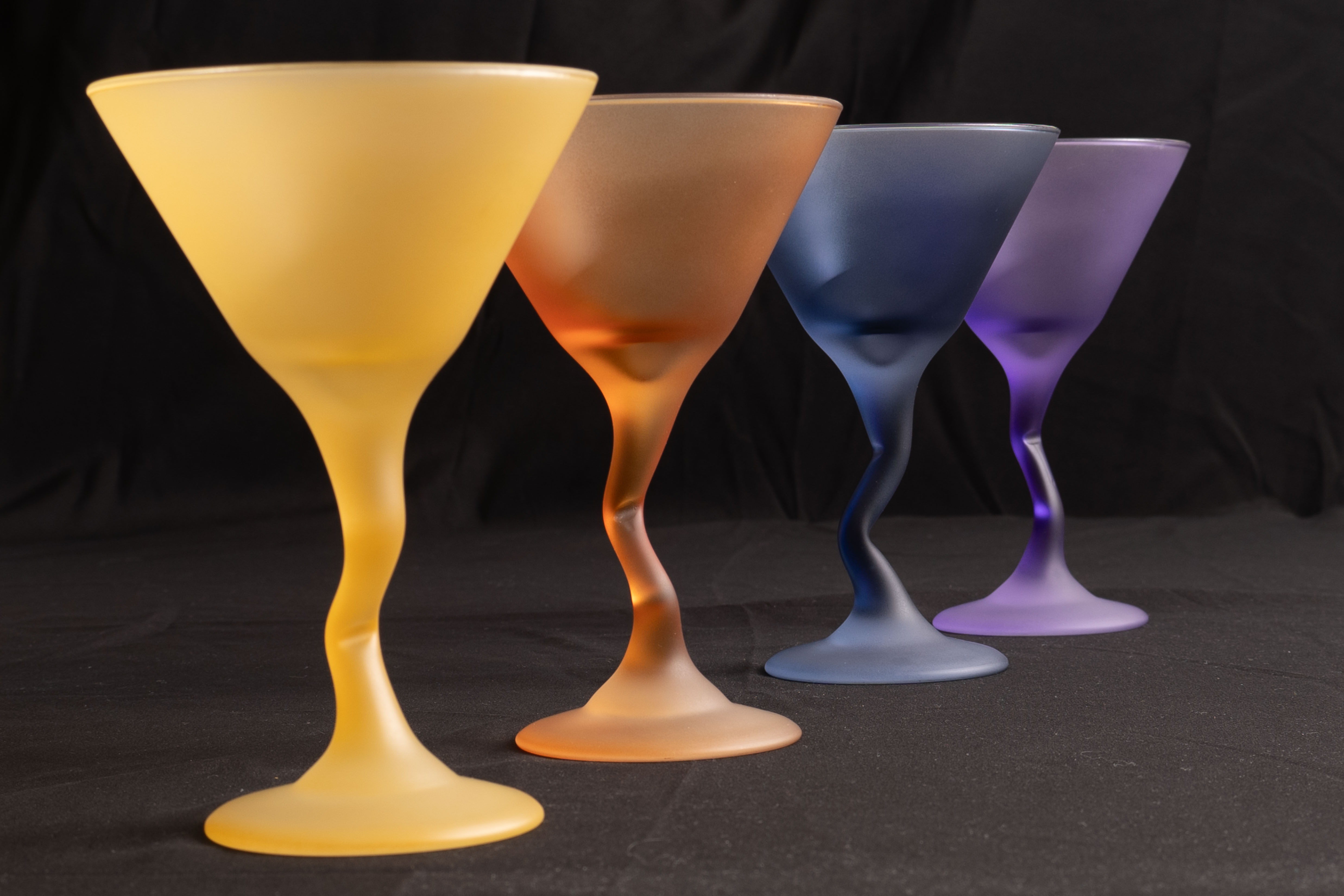 There were some extremely faint shadows, to the left…very hard to see…in the original. I think the lack is a function of the strobe position, above the glasses, the black background, and the darkening of the background done in post.
