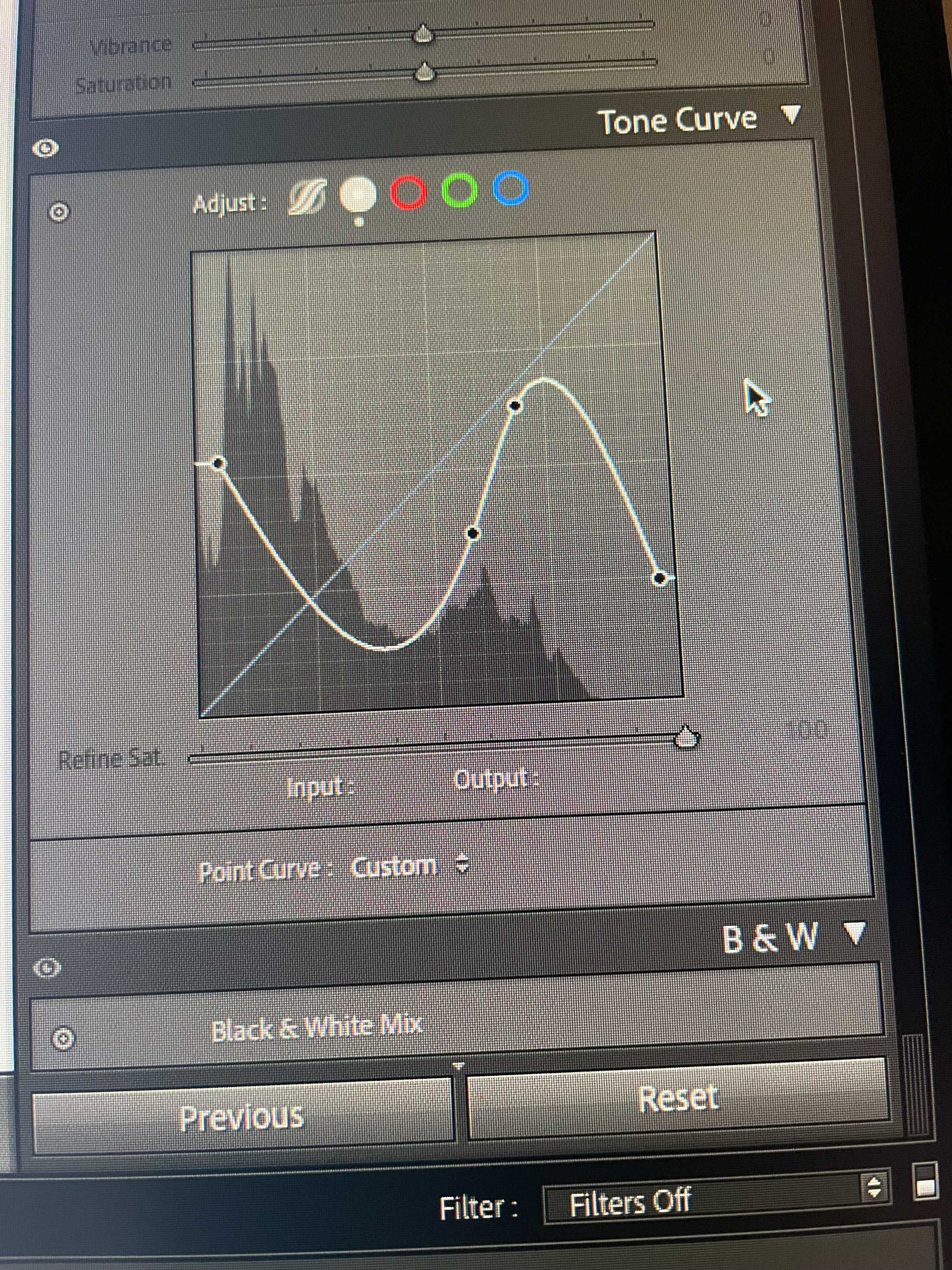 And a photo of my tone curve in lightroom.