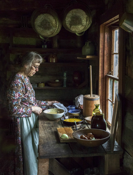 David- You caught the right time to use window light falling on the your subject. It looks beautiful! In order to bring your subject stand out more than you did, I would suggest to tone down shiny utensils at the bottom and also blacken out the back of the lady which catch your attention. Also, I think there is a little room to crop from the top which serves no purpose.