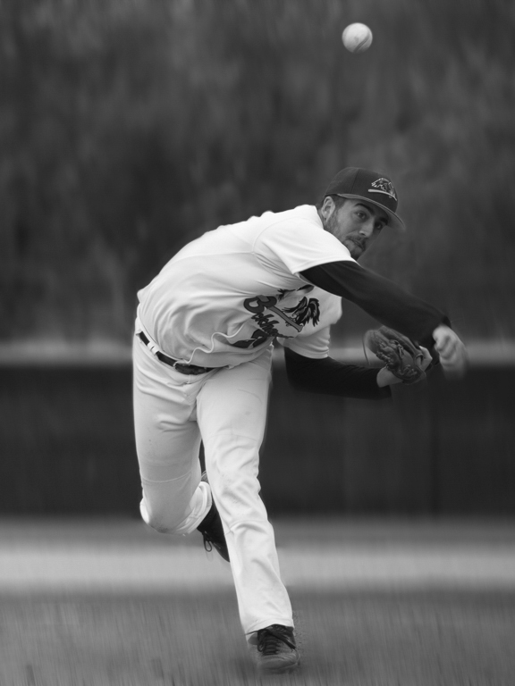 John- Beautiful action shot-I like the face expression of the Pitcher and good details on the player's uniform. I would prefer to remove the pole and white spots in the background. This is the way I like to see this image. I hope you like it!