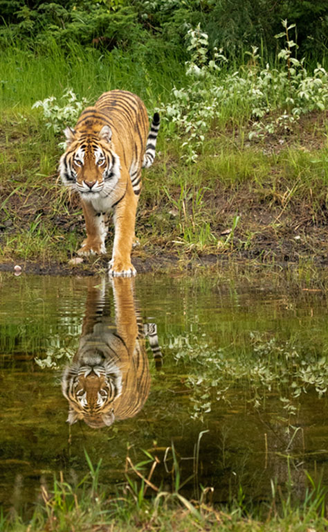 HI Brenda. The original image is absolutely gorgeous; but.I agree that some cropping is necessary as although the tiger stands out because of his beautiful skin and the wonderful reflection, I feel he's a bit small. I would not darken the reflection as it's such an integral part of the beauty of the image. I have also cropped it down a bit but that doesn't vary much from the others. Just another suggestion. Overall a great image. |