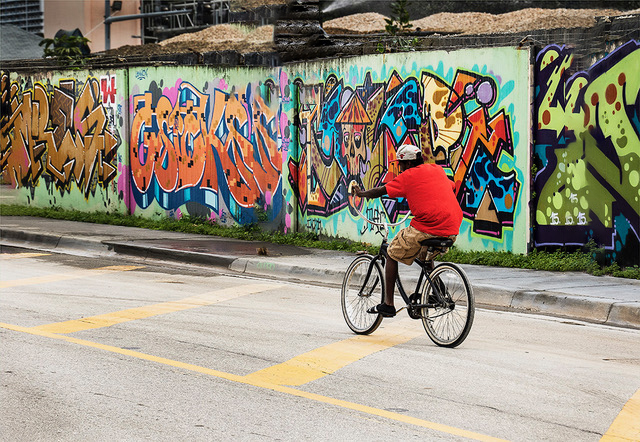This is a great street image and your choice of cropping the image puts the artist in the right place at the right time. Well one.