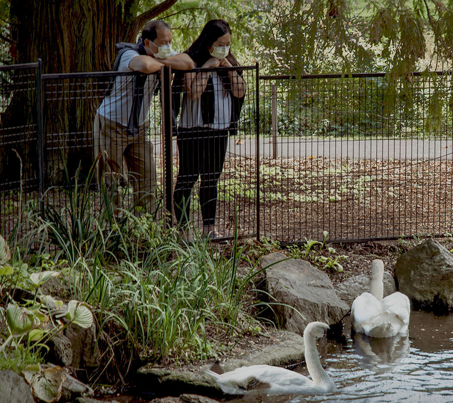 What I did a was duplicate the one swan and moved him over o the left side to make the image more compact and then cropped off the right side which became extraneous. Personally, I like the original better because its a more true to life version of how I often see people in a zoo |