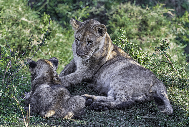 Love this image. Reminds me of our trip to Kenya in 1989. I find just a little too little contrast, so I opened it in Photoshop and did a content-aware-fill and toned down the grass a bit which brightened the image, which I felt put a touch more emphasis on the animals.