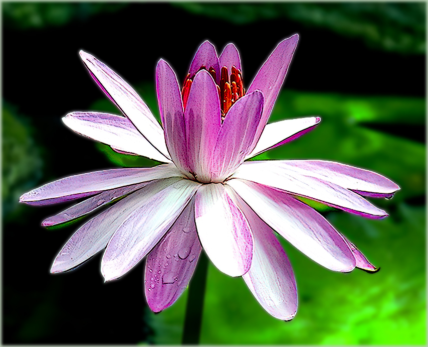 The flower itself is spectacular but for me the background is too bright and kind of fights for attention. I selected the flower then selected inverse. I then reduced the brightness of the background and blurred it a bit so that the flower is the only main attraction. |