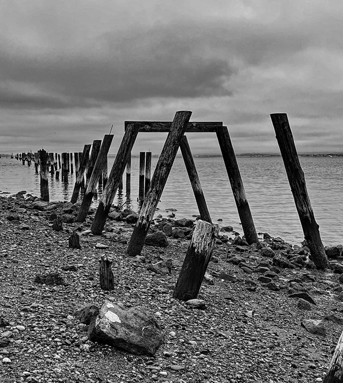 I tried cropping tighter as the pillars are the story to me and the first pillar on bottom right stops me before moving on. Nice job on converting to B&W. |