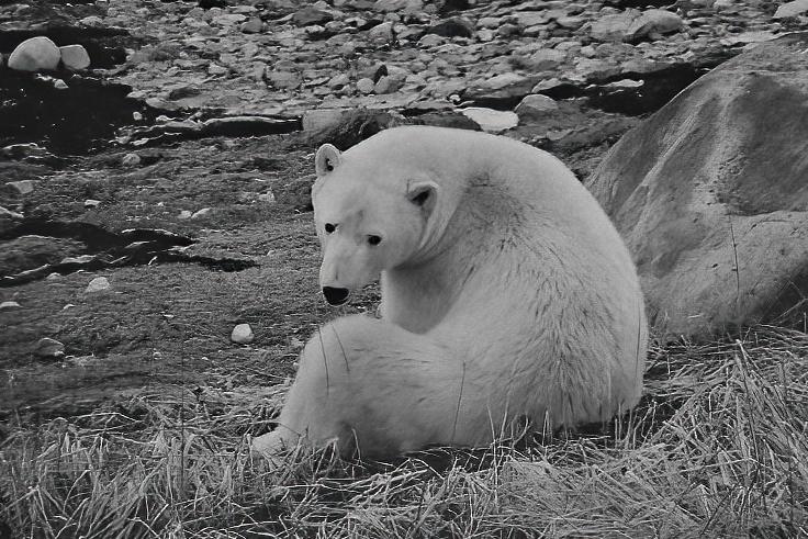 Great capture. Yes I agree the photo looks posturized. I redid color image in Topaz and cropped a little tighter. I also darken background to have more focus on bear. |