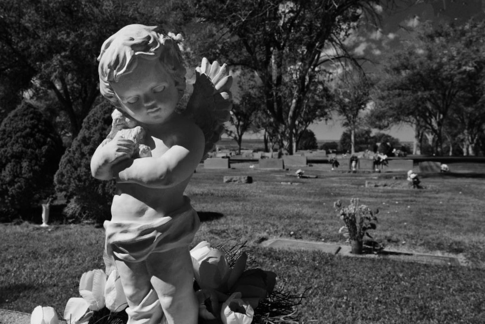 I like this as B&W. I not sure I like the base being cut off. Also I feel the left side should be cut off. It will give you a stronger photo. Like contrast on angel. |