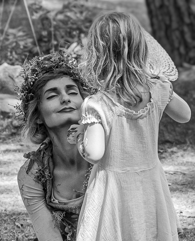 Nice image. I wonder if it would be a better with her eyes open. I wish the background was softer with more focused on the 2 people. I tried a tighter crop and slightly blurred background. This may not work if you are trying to show surroundings. |