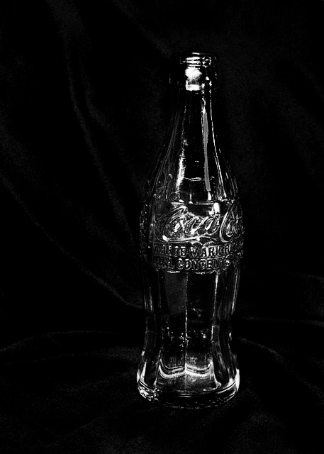 Still life is fun. With it being glass and natural light, it is hard. For me the background too bright. If you want it this way, I might try a cover the hold back without the gaps on the left. Glass is hard to light. May also try again with light painting. I darken background and try to bring out the writing on the bottle. Make me want to get my old coke bottle and photograph. |
