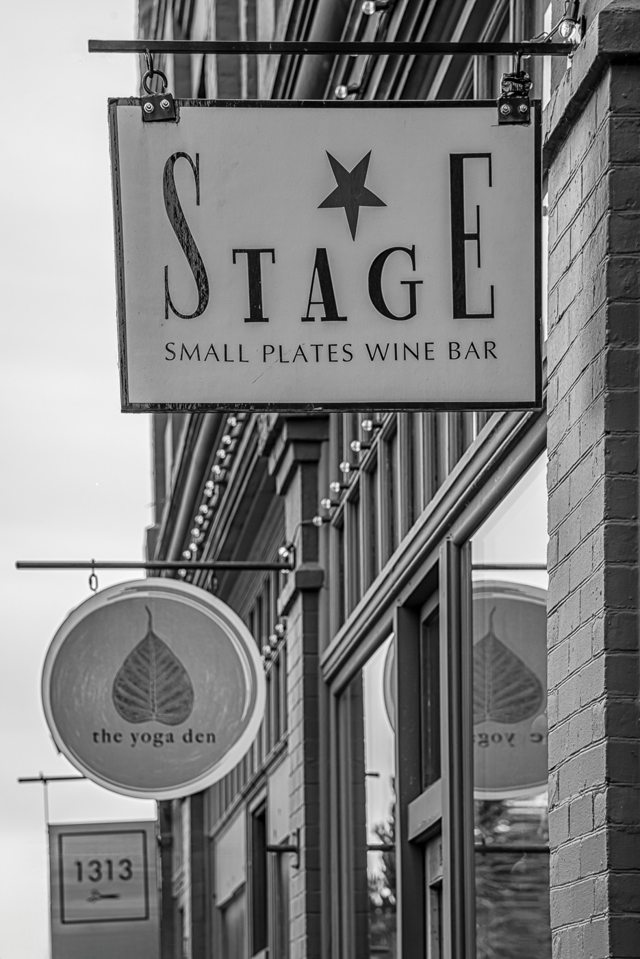 Nice capture, you got 3 signs and I like the reflection in the window. Mono was a good choice. I am bothered a little by the y wire and the wire going through 1313 sign. |